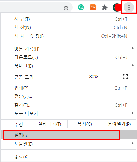 일단 크롬 주소표시줄 가자 우측의 점 세개를 클릭합니다. 그러면 선택할 수 있는 메뉴들이 나오는데요. 크롬 백스페이스 설정을 위해서는 메뉴 중 설정을 클릭 하면 아래와 같은 창이 나옵니다.