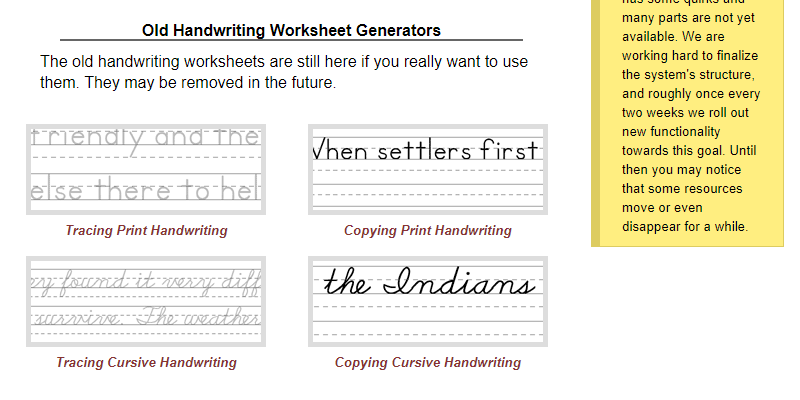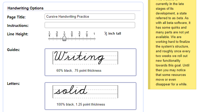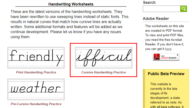 영어 필기체 쓰는 법을 연습 하기 위해서는 별도의 영어 필기체 연습 메뉴가 있는데요. 필기체 종류 선택을 하던 화면에서 약간 하단에 위치한 Old Handwriting Worksheet Generators를 선택 하면 영어 필기체 연습을 위한 연습장을 만들어 출력 할 수 있습니다. 연하게 인쇄된 연습장 위에 반복해서 따라 쓰면서 영어 필기체 연습을 할 수 있게 되어 있으니 이 메뉴도 잘 활용 하시면 아이들 영어 필기체 교육에도 좋을 것으로 보입니다.