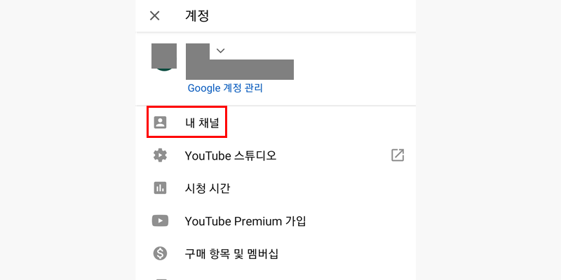 이 부분은 어렵지 않은데요. 모바일로 유튜브에 접속 한 다음, 내 계정을 클릭 합니다. 그러면 하단에 여러 가지 메뉴가 나오는데요. 여기서 내채널을 클릭하여 들어 가면 유튜브 채널 이름 변경을 비롯하여 채널과 관련 된 다양한 관리를 할 수 있습니다.