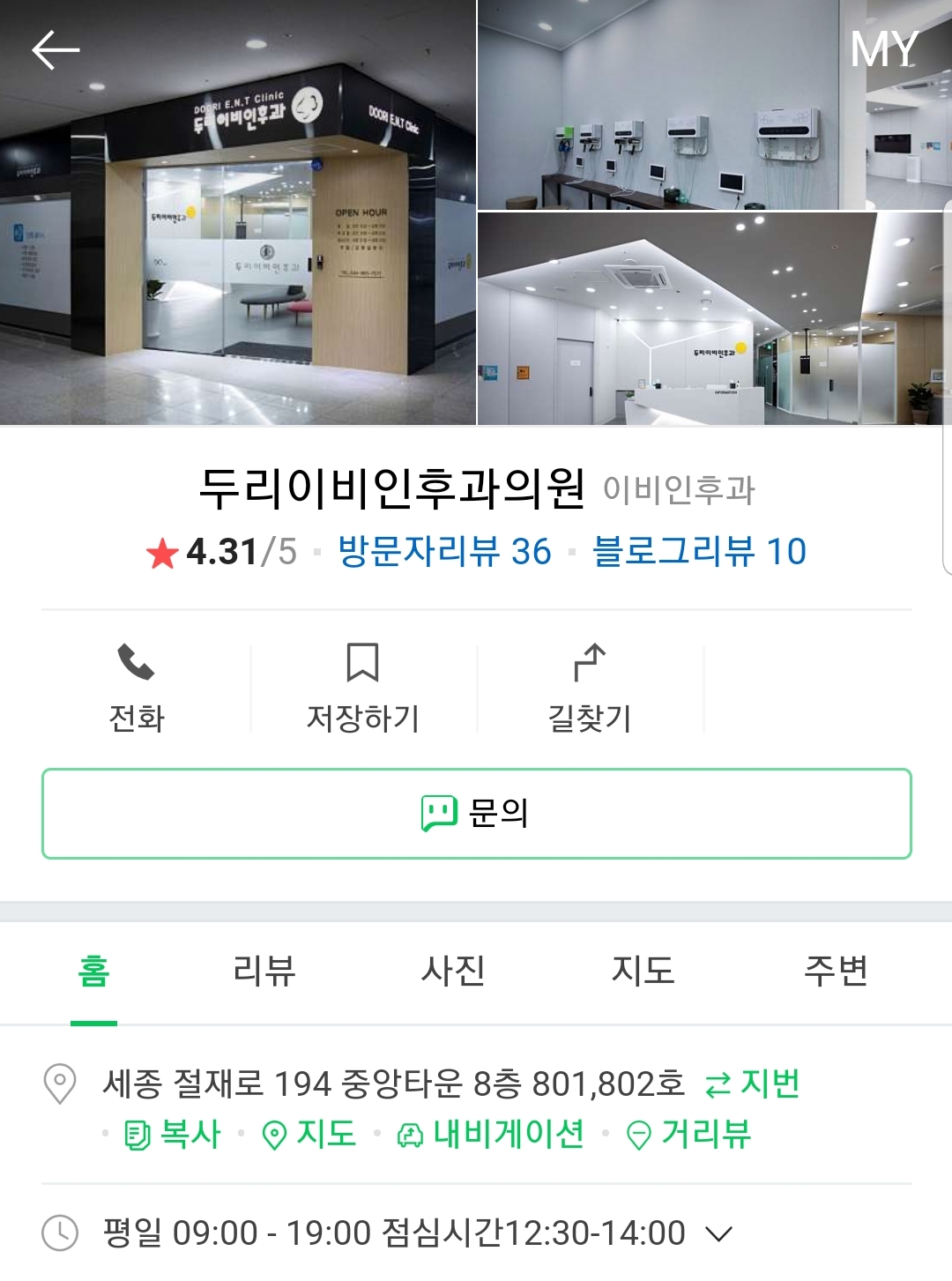 세종시 중앙타운 두리이비인후과의원.원래 4층이었는데 8층으로 확장 이전 했다.