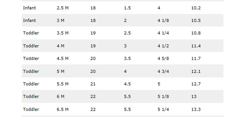 일본 신발 사이즈표는 cm로 되어 있어 한국과 거의 흡사하기 때문에 고민 하지 않아도 되는데요. 중국 신발 사이즈표도 비슷하지만, 미국이나 유럽은 인치 단위를 쓰기 때문에 신발 사이즈 조견표가 꼭 필요합니다. 특히 유아의 경우 발 사이즈가 순식간에 바뀌고 성장도 빠르므로 꼭 휴대폰에 미국 유아 신발 사이즈표를 저장 해 두고 수시로 비교 해 보는 것이 좋습니다 .