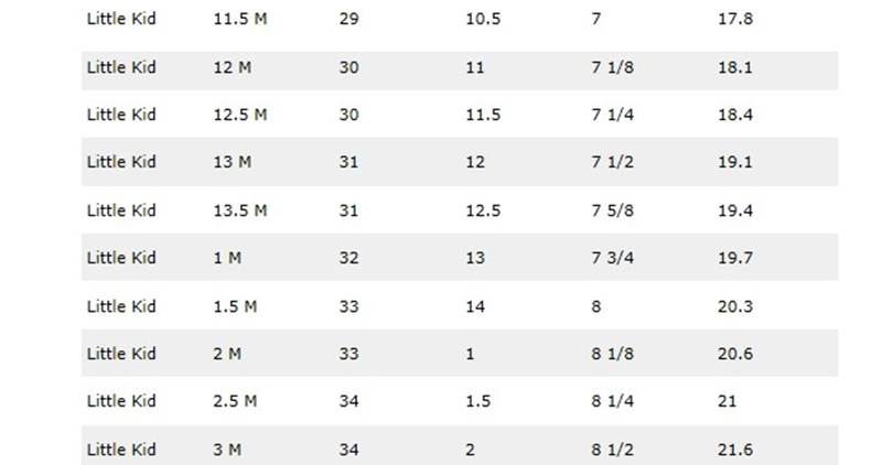 지금 올리는 표는 사진이 여러장으로 나누어 져 있는 만큼 직구 신발 사이즈를 비교 하면서 아이의 성장에 따라 사진을 한 장씩 삭제 해 나가는 재미도 있어요. 하나 하나 미국 신발 사이즈표를 삭제 해 나가다 보면 어느 새 아이가 다 커 있겠지 하는 생각도 들고요.