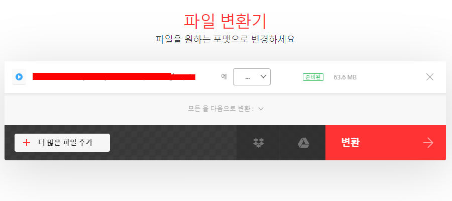 파일을 끌어다 놓으면 바로 mov mp4 변환을 할 수 있는 상태가 되는데요.파일명 바로 우측에 있는 점 세개를 클릭 해 주면 어떤 파일 확장자로 변환 할지 나옵니다. 거의 모든 파일 확장자로 변환이 가능하기 때문에 선택만 해 주면 됩니다.
