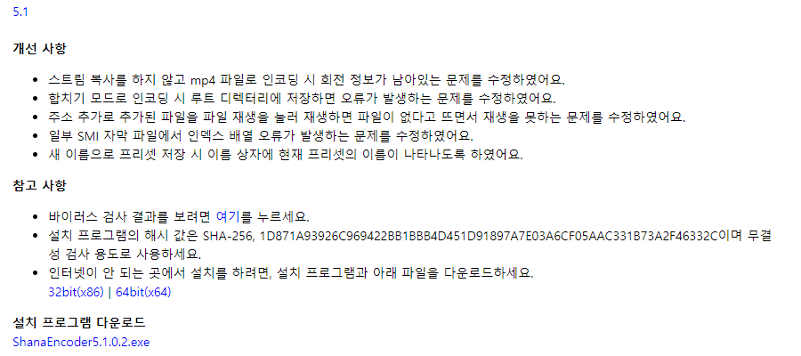 샤나인코더 다운로드 링크와 함께 최신버전의 업데이트 내역이 있는데요. 꾸준히 업데이트가 되기 때문에 아이폰을 사용 하는 분들이라면 부담 없이 mov mp4 변환을 할 수 있을 것 입니다.