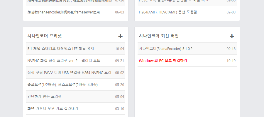 샤나인코더 다운로드를 위하여 사이트에 접속을 하면 메뉴가 다소 생소할 수 있는데요. 스크롤을 내려서 샤나인코더 최신버전 게시판을 클릭 해 줍니다.