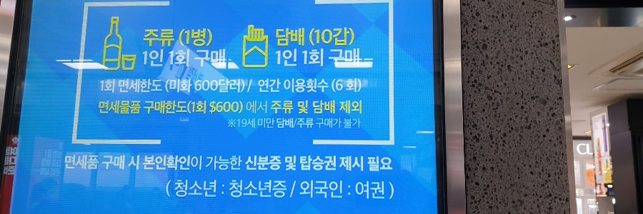 특히 술은 1인당 1병, 담배는 1인당 10갑씩 연 6회까지 제주면세점 주류구매한도와 제주면세점 담배 구매 한도가 적용 되기 때문에 평소 여행을 즐기는 분들이라면 얼마든지 넉넉하게 술과 담배를 구매 할 수 있습니다.