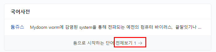 일단 해당 단어의 출처는 공식 국어사전이 아닙니다. 오픈사전으로 그 출처가 표시 되어 있는데요. 듐으로 시작하는 단어가 단 하나 있지만 그마저도 정식으로 국어사전에 등재 된 것이 아니라 실제로는 존재하지 않는 단어라는 것 입니다. 따라서 듐으로 시작하는 단어는 없고, 끝말잇기 한방단어를 찾는다면 역시 듐으로 끝나는 단어를 외치는 것이 최고라는 뜻이기도 합니다.