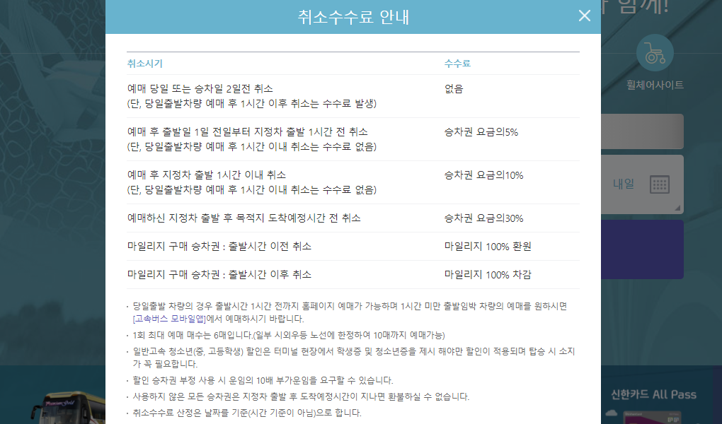 고속버스 예매 취소 수수료