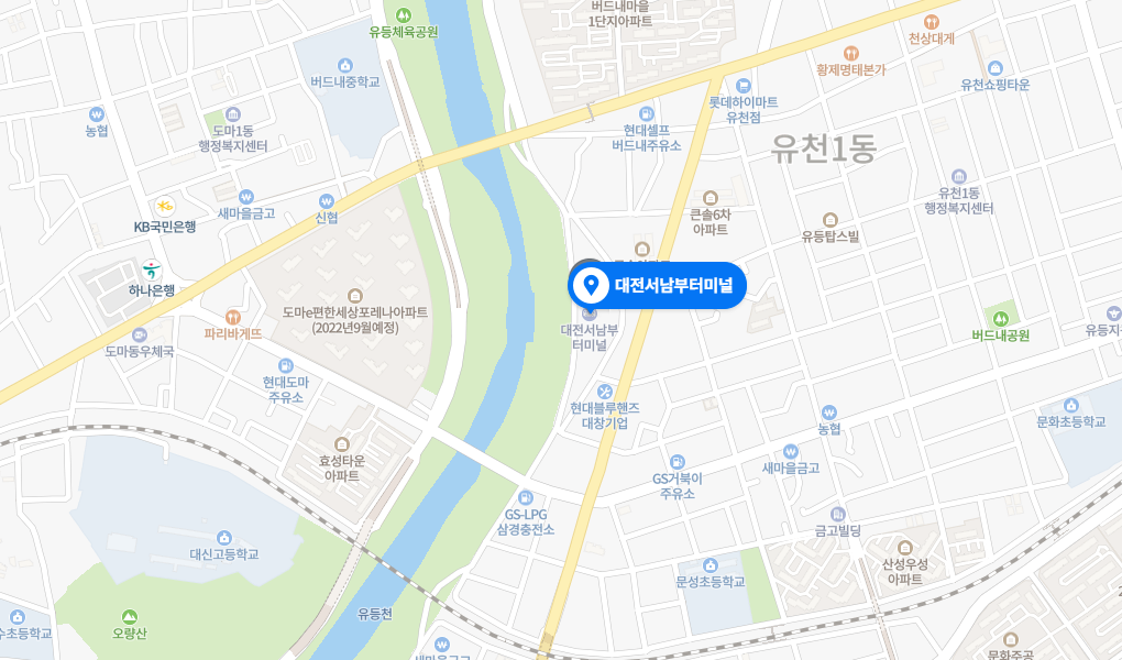 대전에는 유성시외버흐터미널, 대전복합터미널, 유성금호고속터미널, 청사터미널 등 여러 터미널이 있습니다. 그 중 중구 유천동에 위치 한 대전 서남부터미널은 대전 서부터미널, 서대전터미널 등으로도 불리는데요. 다양한 명칭이 있는 만큼 대전 서남부터미널 시간표를 확인 할 때에는 내가 가고자 하는 곳이 맞는지 지도를 통하여 꼭 확인 하고 예약을 하여야 합니다.