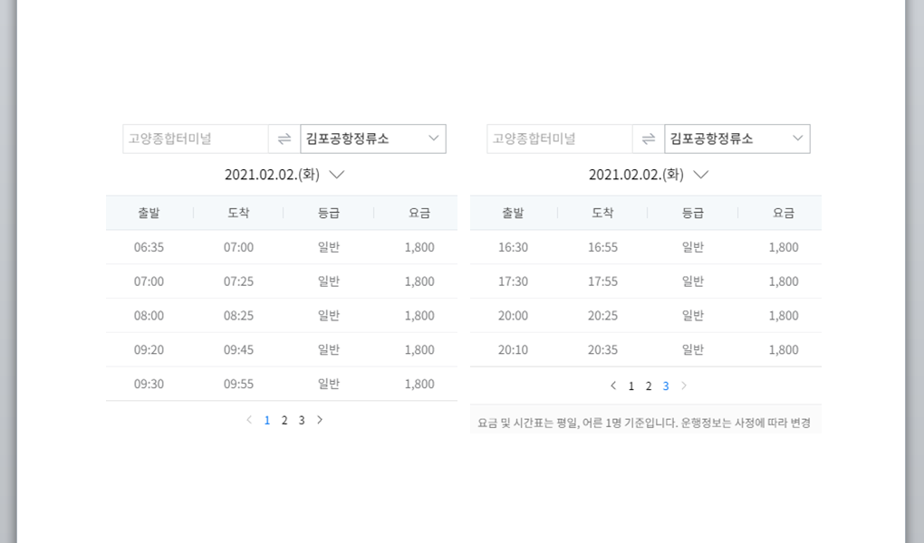 고양 백석터미널 시간표를 보면 김포공항으로 가는 첫차가 6시 35분, 마지막 차는 20시 10분인데요. 심야에 운행되는 버스가 없기 때문에 비행 스케줄이 있는 분들은 지하철 등 다양한 교통수단을 고려 해 보는 것이 좋겠습니다.
