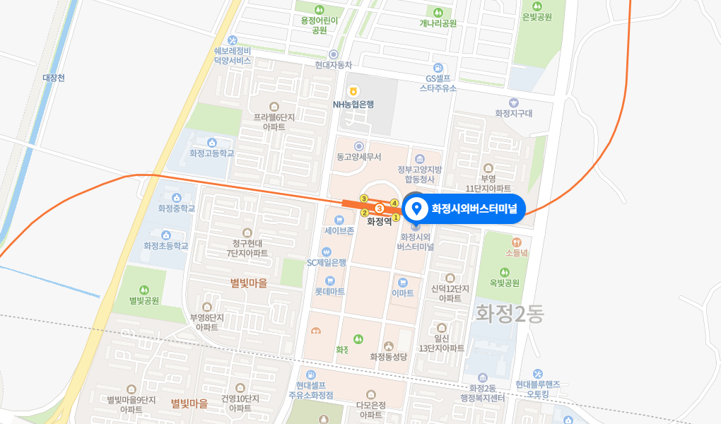 화정시외버스터미널은 고양시 덕양구 화정동 화정역 인근에 위치하고 있는 소규모 터미널입니다. 일산에서는 백석종합터미널이 주 역할을 하고 있기 때문에 화정터미널 시간표는 배차나 노선이 그리 많지 않습니다. 다만 백석터미널보다 화정시외버스터미널이 더 가까운 분들은 화정시외버스터미널 시간표를 보고 이곳을 이용 하시면 더 편리 할 것으로 보입니다.