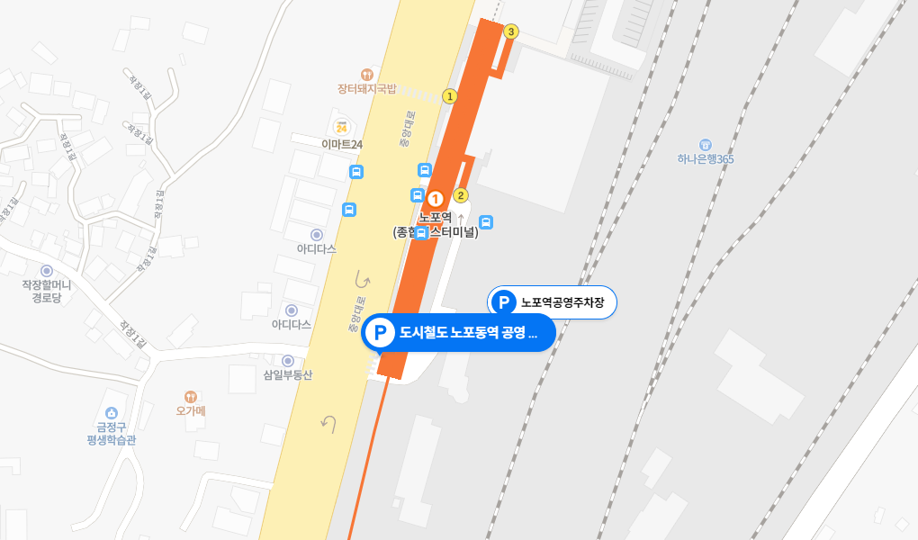 특히 노포역 공영주차장은 시외버스터미널에 붙어 있어 이동 동선이 길지 않고, 주차 자리도 넉넉하기 때문에 주차를 하면서 스트레스 받을 일이 거의 없다는 것도 장점입니다. 주차장과 터미널은 연결되어 있기 때문에 비가 오는 날도 불편함 없이 이용할 수 있습니다.