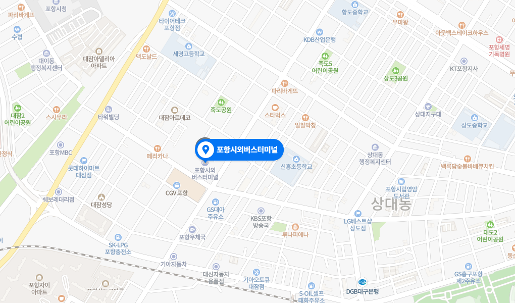 포항시외버스터미널은 포항시 남구 상도동에 위치 해 있습니다. 포항시 남구 해도동에 위치 한 포항 고속버스터미널과는 다른 곳이므로 포항시외버스터미널 시간표를 조회 할 때에 각별한 주의가 필요합니다. 포항고속버스터미널에서는 서울 강남 고속버스터미널로 갈 수 있지만, 포항터미널 시간표를 보면 동서울 터미널로 가는 배차만 존재 합니다.