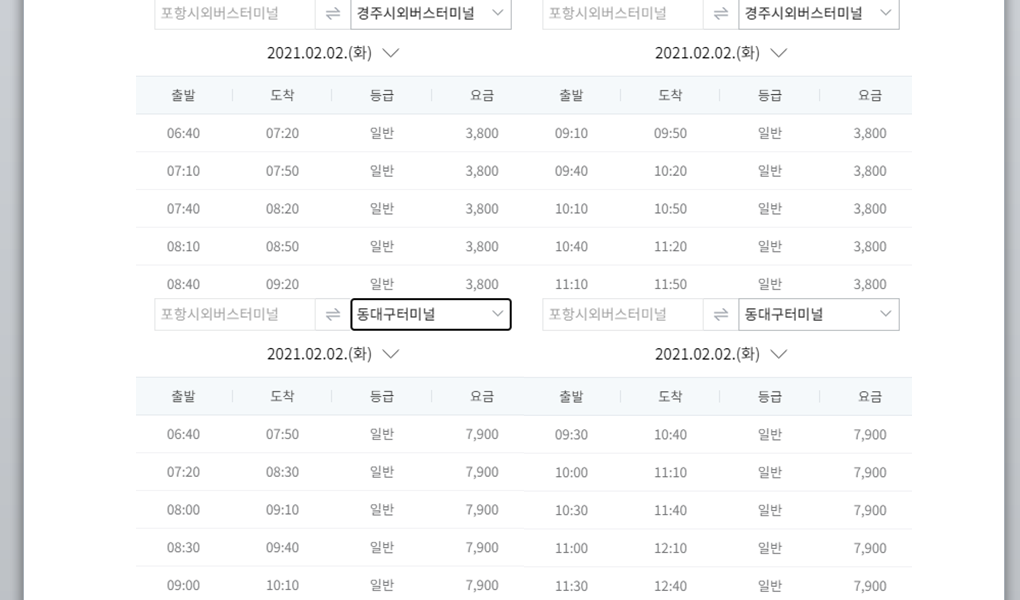 일정을 계획 할 때에는 동서울버스터미널 시간표나 경주 시외버스터미널 시간표등 행선지의 버스 시간표를 함께 확인 하여 돌아오는 여정까지 함께 예약 할 수 있도록 하고, 서울 강남고속버스터미널로 가야 하는 분들은 포항 고속버스터미널 시간표를 참고 하시는 것이 좋겠습니다.