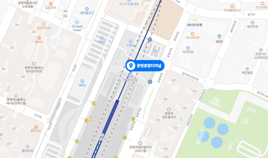 광명종합터미널은 경기도 광명시 일직동에 위치 하고 있습니다. 광명시 철산동에 광명 시외버스 정류소가 있기 때문에 혼동하지 않도록 주의 해야 하는데요. 광명 시외버스터미널은 동탄, 청주행의 두 노선만 운행 중이지만 광명 종합버스터미널은 시간표를 보았을 때 충남 당진, 서산 등을 비롯하여 다양한 노선을 운행하고 있습니다.