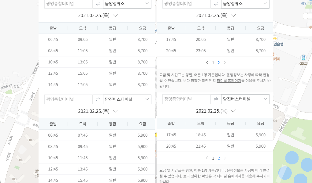 광명종합터미널 요금