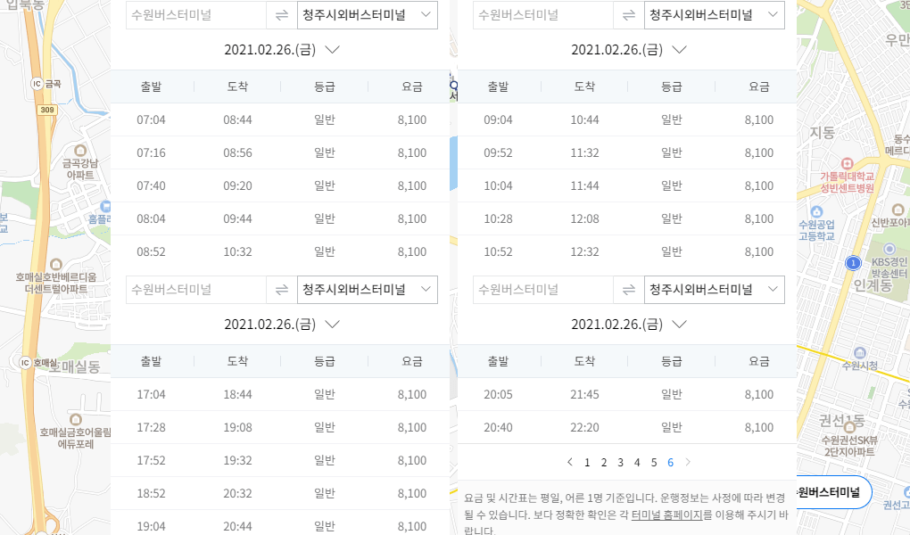 수원버스터미널 시간표는 서수원터미널에 비하여 훨씬 더 많은 노선과 배차가 있습니다. 특히 청주시외버스터미널로 가는 차량은 출퇴근 시간에는 거의 10~30분 간격으로 있을 정도인데요. 때문에 가고자 하는 행선지로 보다 편하게 갈 수 있습니다.