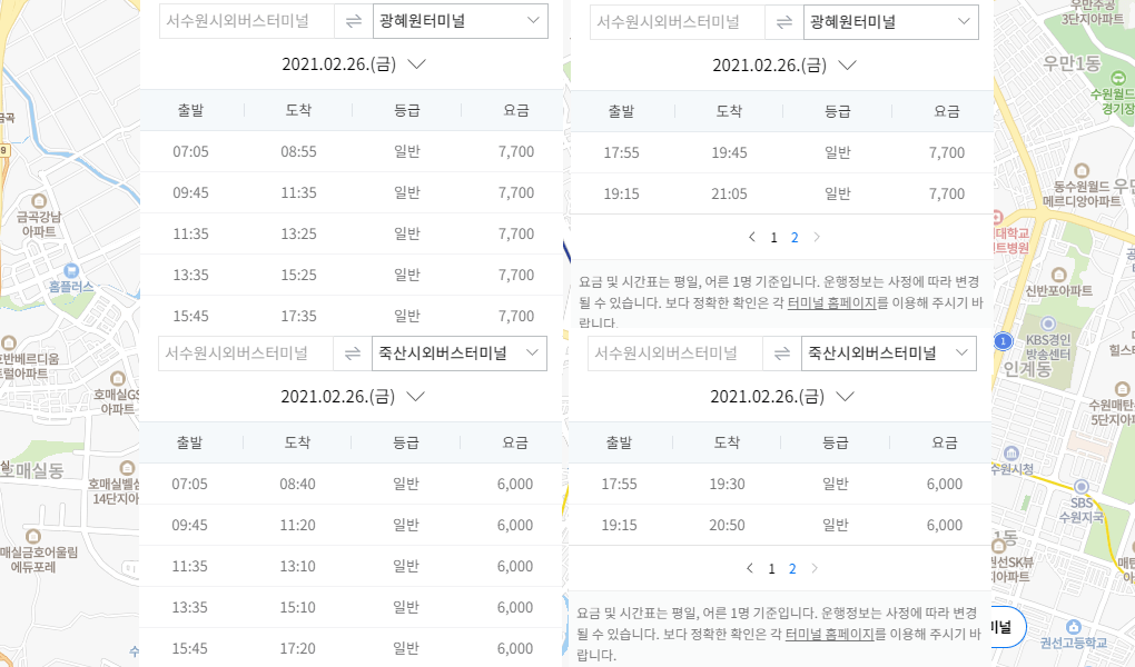 서수원 버스터미널 요금