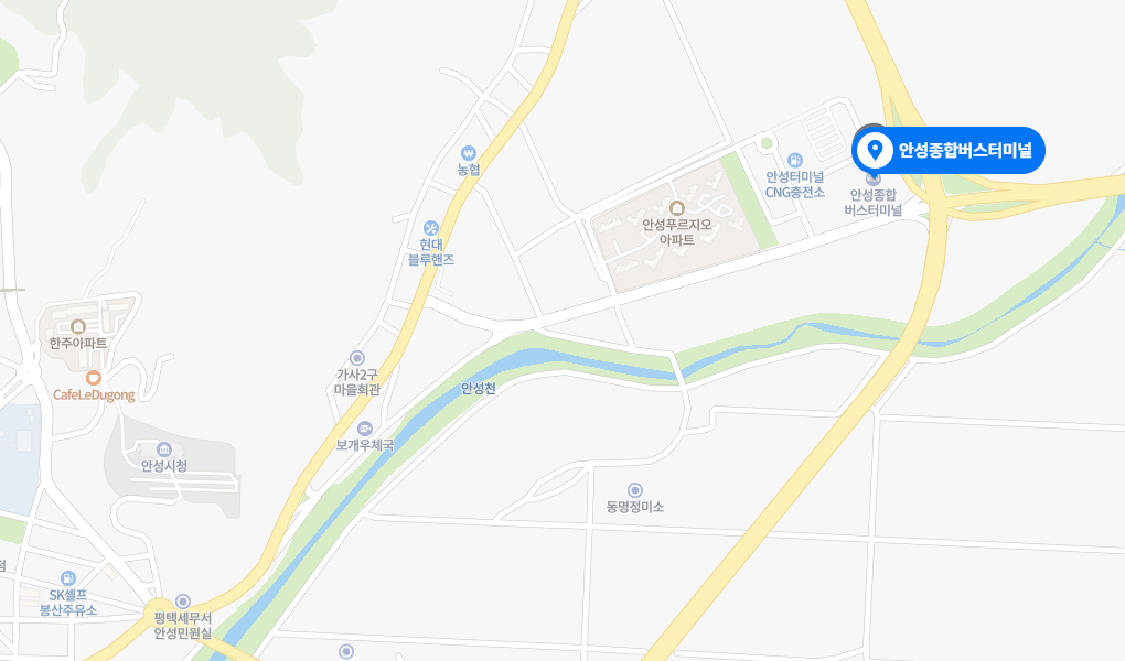 안성종합버스터미널은 경기도 안성시 가사동에 위치 하고 있습니다. 다양한 노선과 함께 배차 또한 많으므로 필요한 때에 원하는 목적지로 가는 배차를 쉽게 잡아 탈 수 있다는 것이 장점인데요. 서울 강남고속버스터미널뿐만 아니라 동서울터미널로 가는 차량도 있으므로 서울로 갈 때에도 목적지에 따라 편하게 이용 할 수 있습니다.