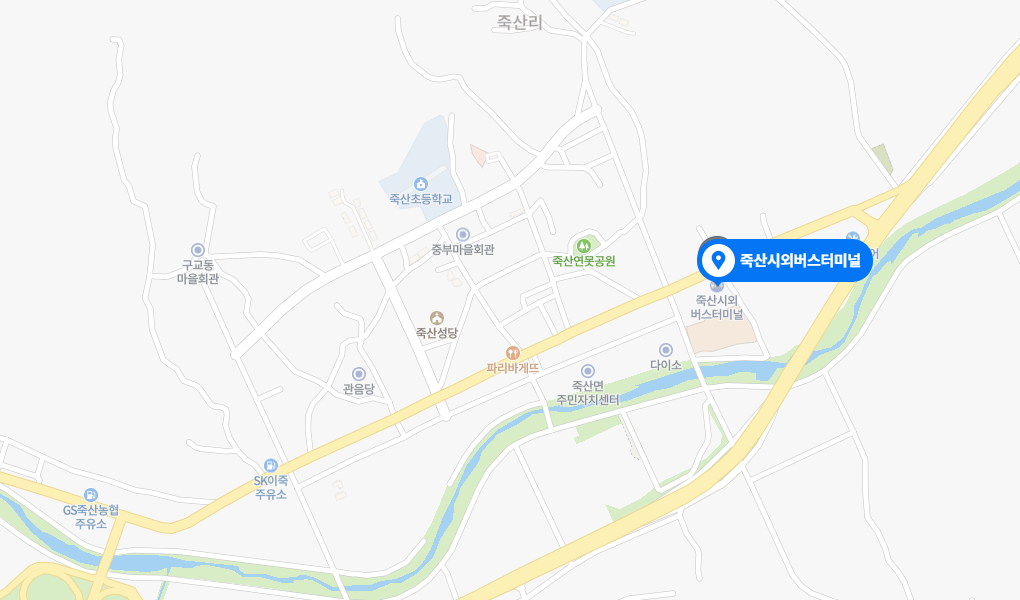 죽산시외버스터미널은 안성시 죽산면 죽산리에 위치 하고 있습니다. 그 위치 때문에 편하게 죽산터미널이라고 부르는 분들도 많은데요. 고속버스는 운행 하지 않고 시외버스만 운행 하고 있으므로 죽산시외버스터미널이 정확한 명칭입니다.
