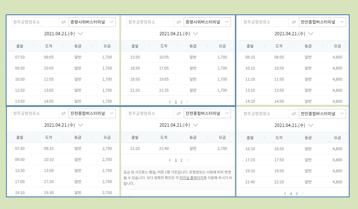 청주공항정류소 시간표를 보고 청주공항 버스 예매를 하기 위해서는 버스타고를 이용하는 것이 편리합니다. 청주공항 버스 운행 시간표가 수시로 바뀌기 때문에 반드시 미리 예매를 하는 것이 좋을 것으로 보입니다.