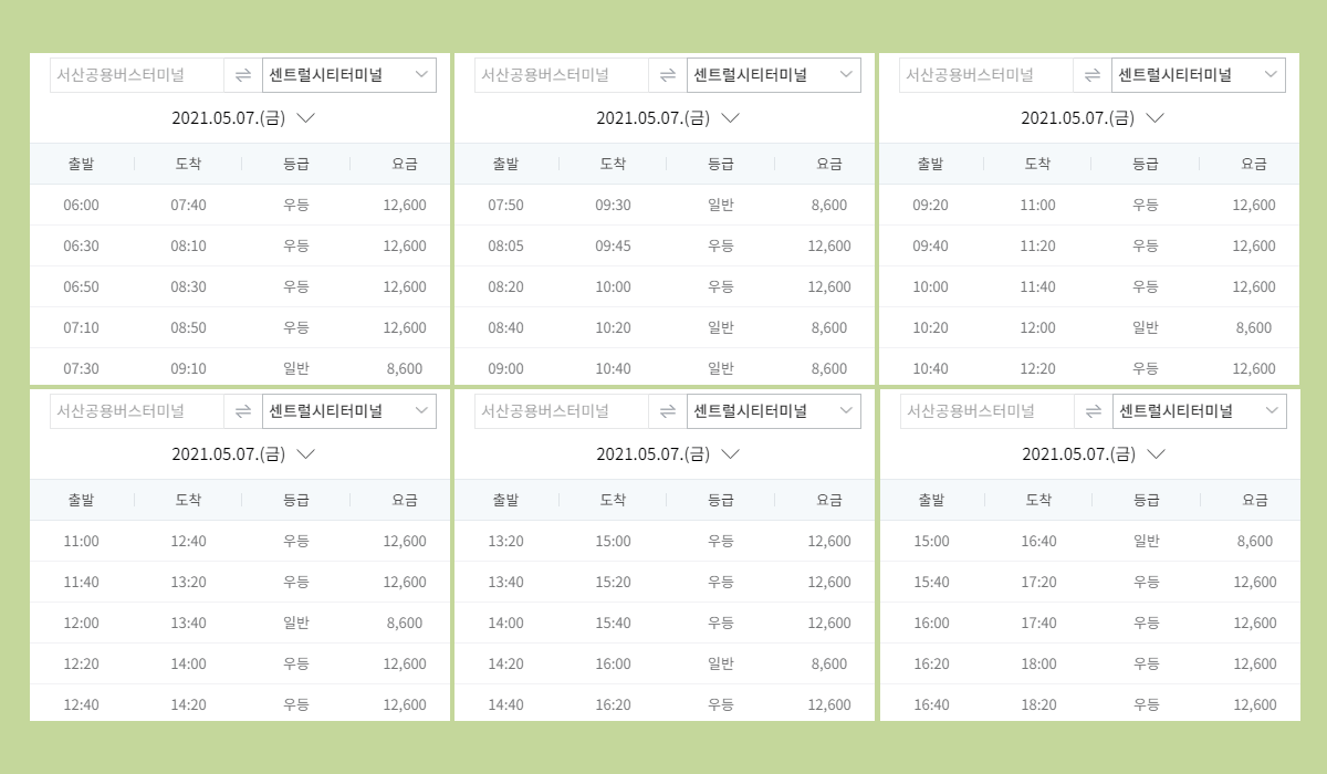 특히 서산공용버스터미널 시간표를 보고 버스를 이용 할 때에는 고속버스 예매 취소 수수료와 시외버스 예매 취소 수수료를 잘 비교 해 보아야 합니다. 시외버스에 비해 고속버스 취소 수수료는 더 엄격하게 적용되므로 반드시 확인하여 수수료를 무는 일이 없도록 해야 합니다.