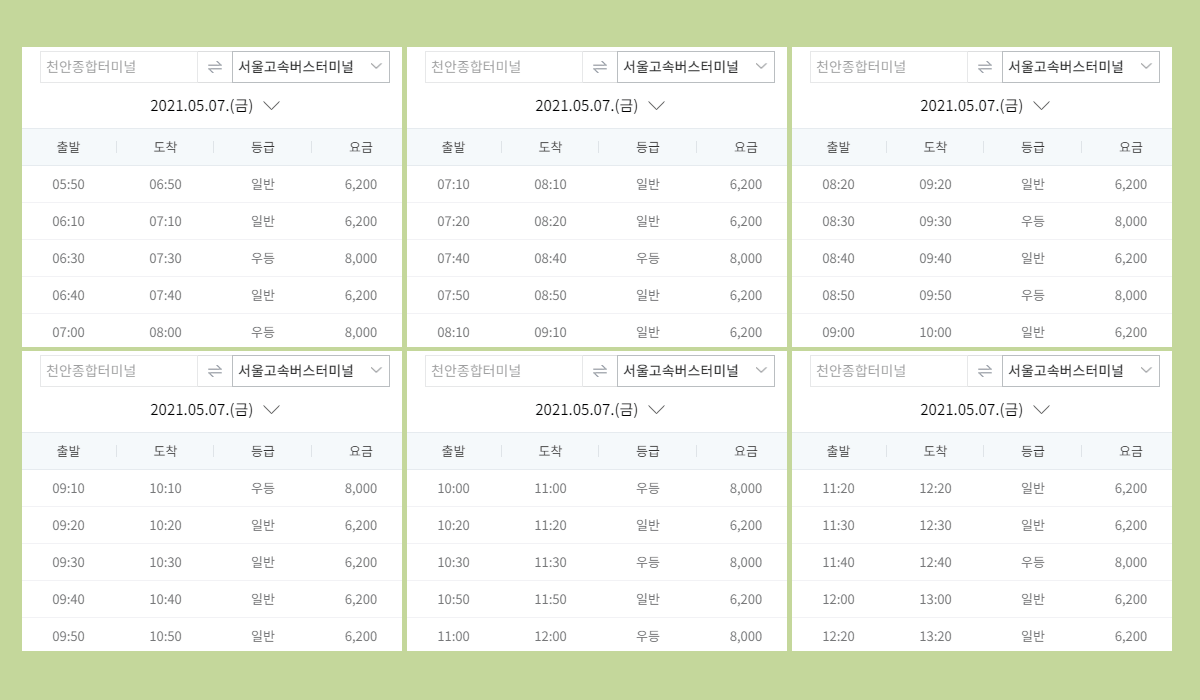 또 천안시외버스터미널 예매시에는 반드시 고속버스 예매 취소 수수료와 시외버스 예매 취소 수수료를 확인 해야 합니다. 시외버스는 고속버스에 비하여 버스를 놓친 후에도 수수료 정책이 관대하기 때문에 꼭 확인하여 수수료 손해를 보지 않도록 해 두는 것이 좋습니다.