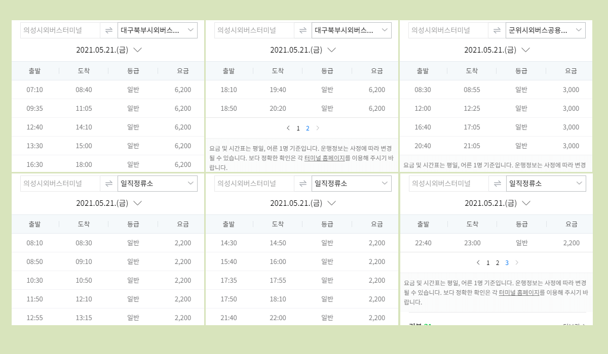 의성시외버스터미널 요금