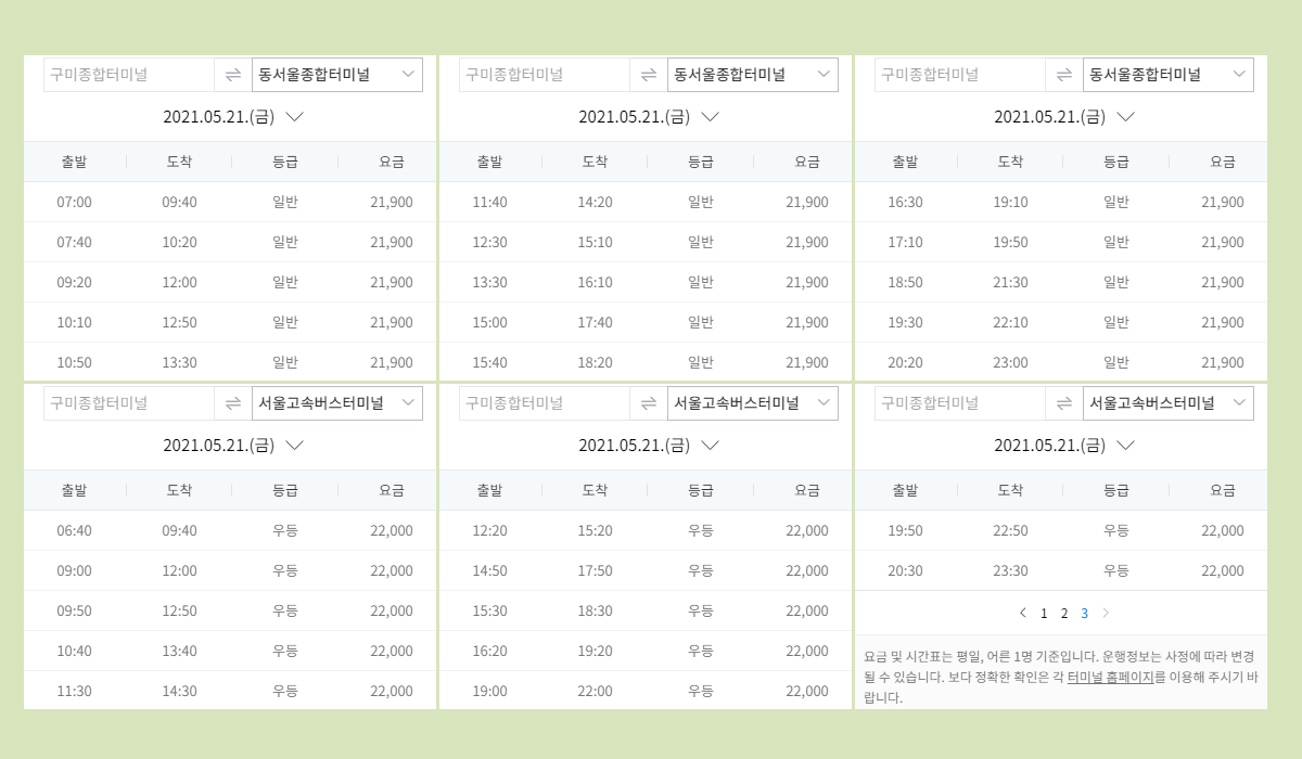 구미종합터미널 요금