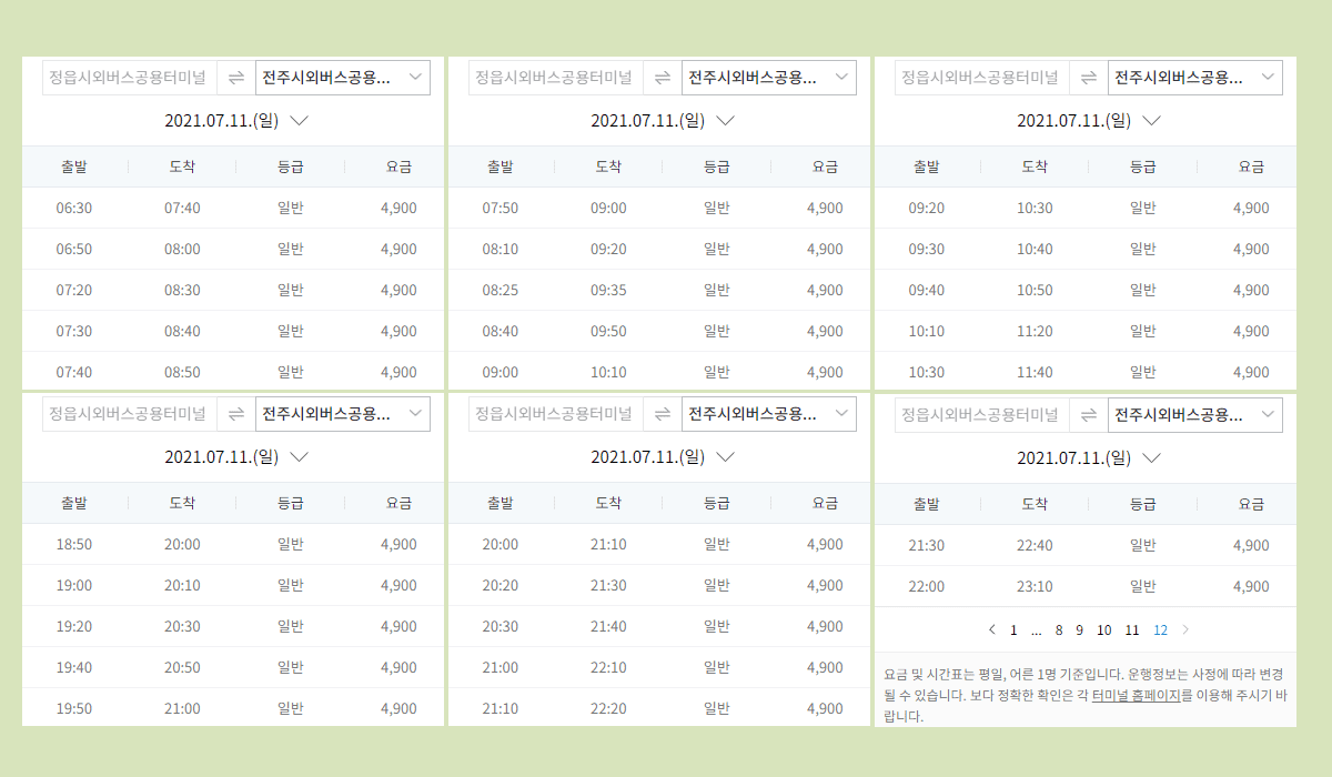 정읍시외버스공용터미널 시간표를 보면서 고속버스 예매 취소 수수료와 시외버스 예매 취소 수수료도 함께 비교 하면 수수료를 절약할 수 있어 보다 도움이 될 것 입니다.