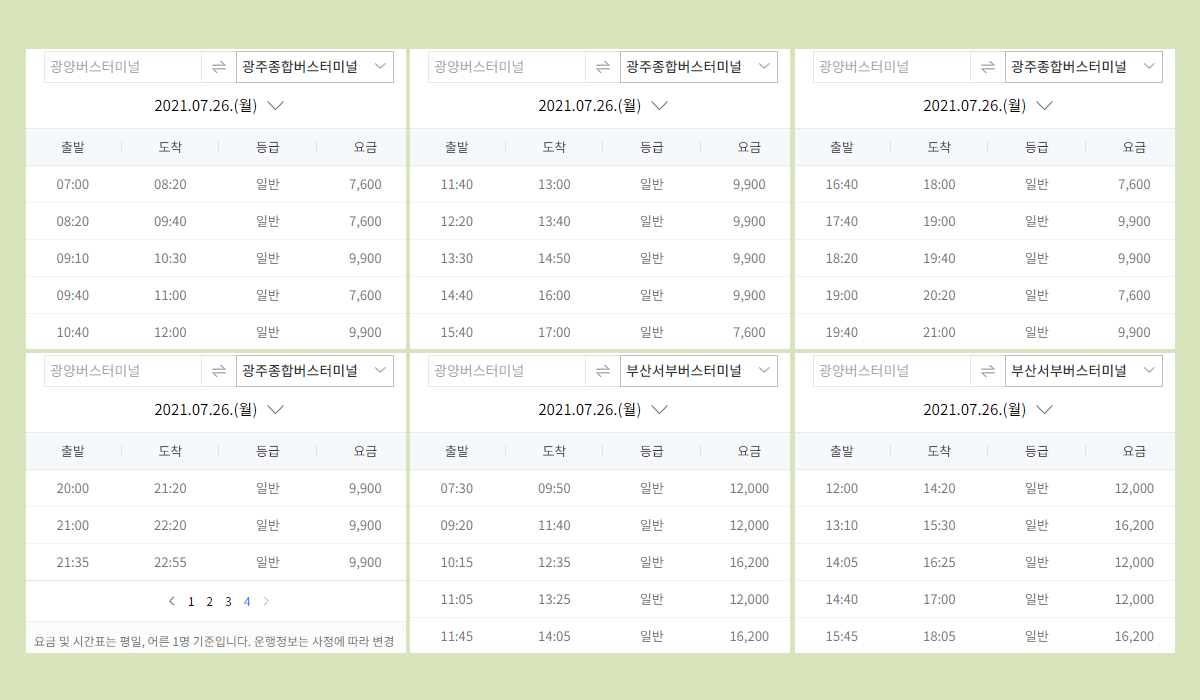 광양터미널 최신 시간표는 버스타고 또는 티머니에서 확인 할 수 있습니다. 시간표 변경이 있을 수 있으므로 되도록 미리 버스 시간표를 보고 예매를 하는 것이 바람직합니다.