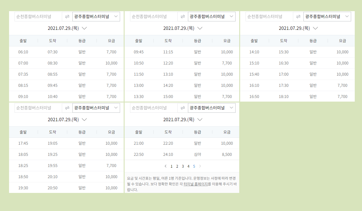 순천종합버스터미널 요금