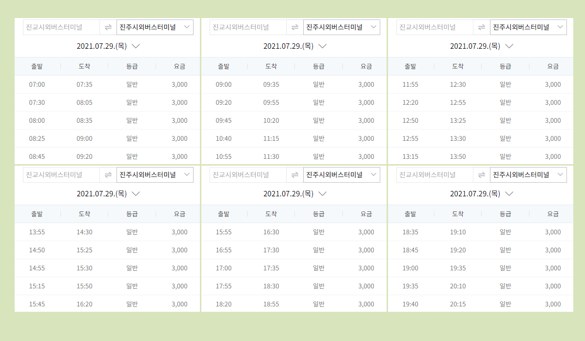 진교시외버스터미널 시간표 확인과 예매를 마쳤다면 남해시외버스터미널 시간표, 진주시외버스터미널 시간표등을 확인하여 돌아오는 차편도 함께 예매 하는것이 일정 관리에 좋으니 꼭 함께 확인 하시기 바랍니다.