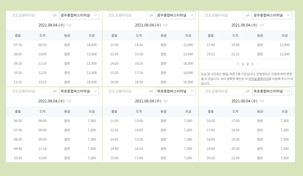 진도터미널 시간표