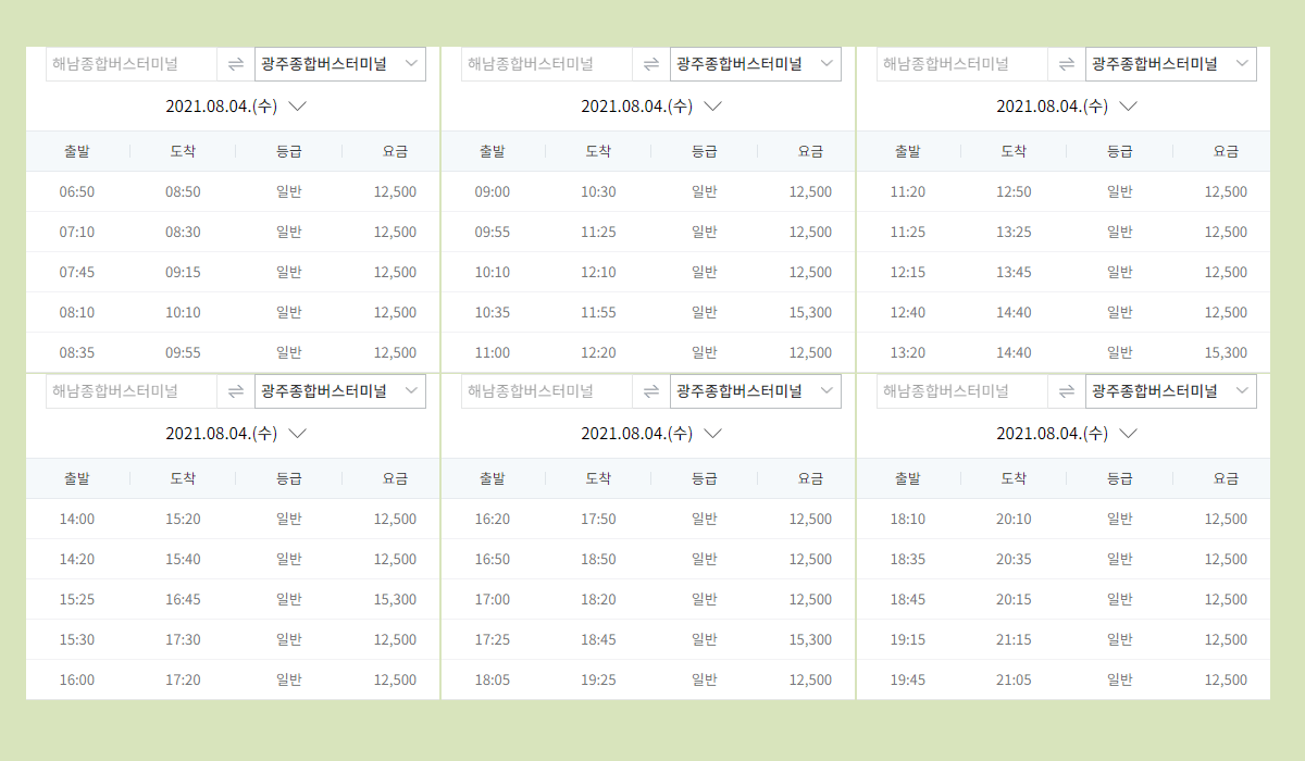 해남종합버스터미널 요금