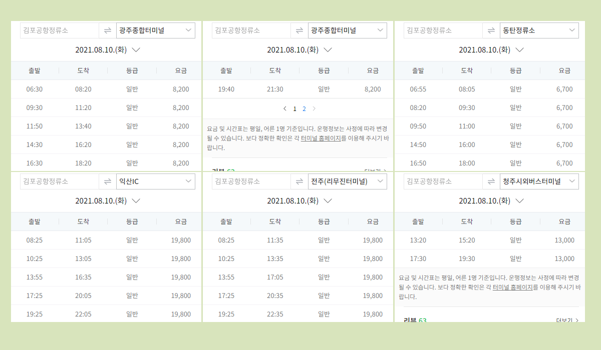 김포공항시외버스터미널 요금