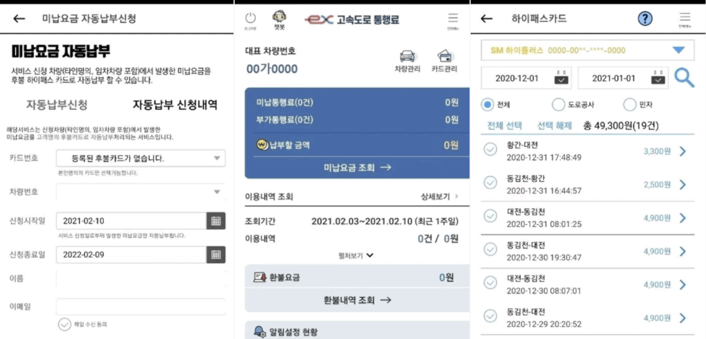또 한가지 고속도로 통행료 납부 어플의 좋은점은 톨비 미납시 자동 납부가 된다는 것 입니다. 하이패스 후불 카드를 등록 해 두면 미납요금이 발생했을 때 자동으로 요금이 납부되고, 신청 종료일을 지정할 수 있어 내가 원하는 기간에만 돈이 빠져나가게 할 수 있습니다.
