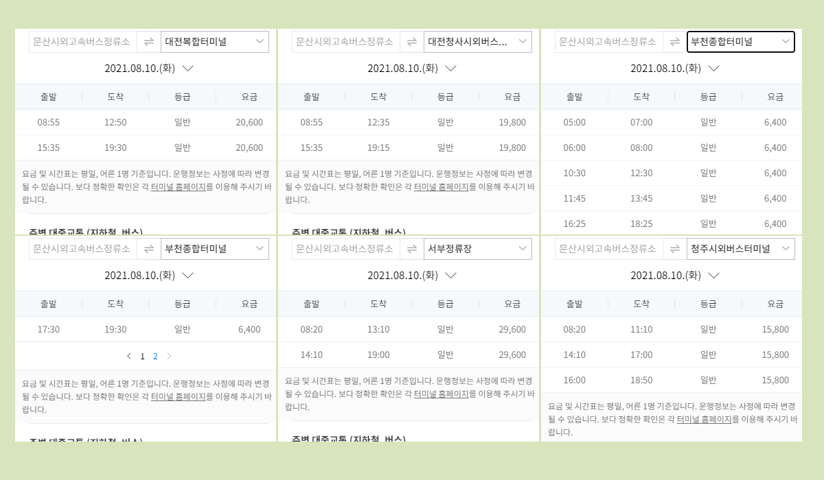 문산터미널 버스 예매를 했다면 그 다음에는 대전청사시외버스터미널 시간표, 대전복합터미널 시간표등을 확인 하셔서 돌아오는 여정도 반드시 예매 해 두시기 바랍니다.