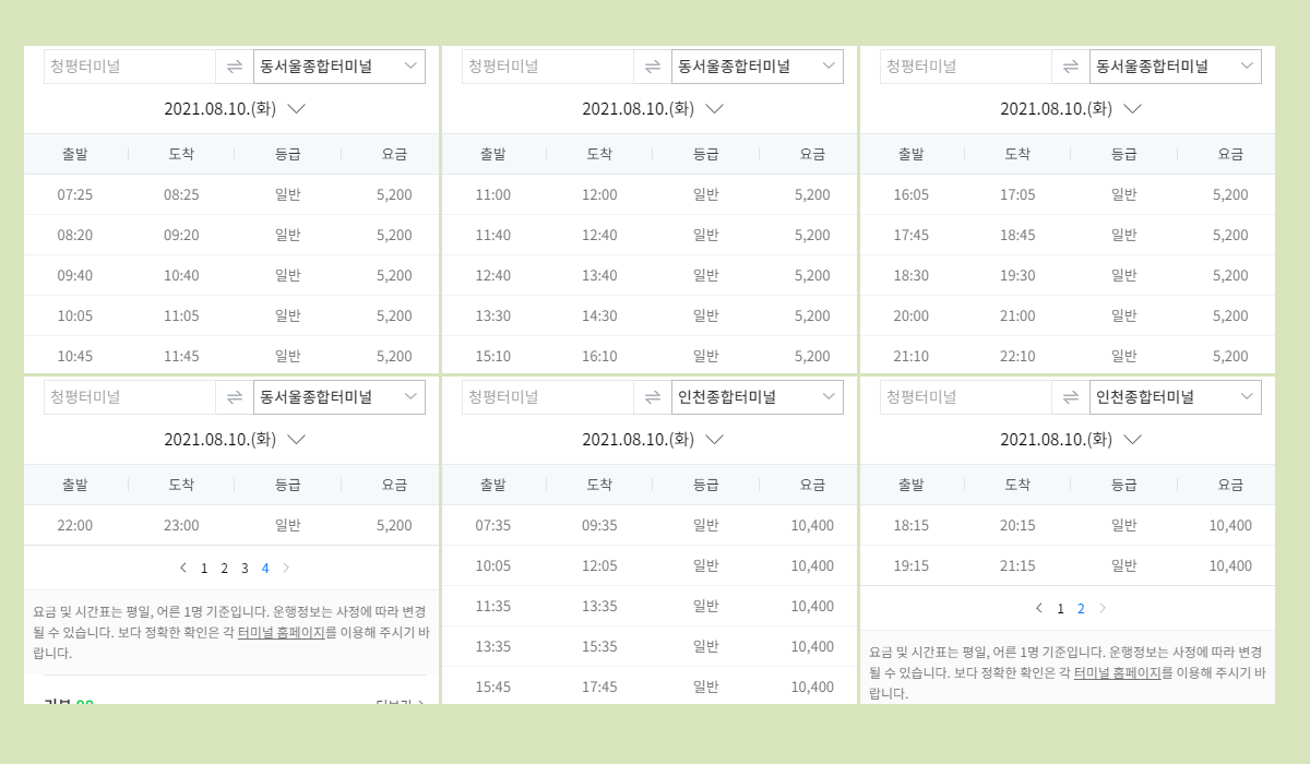 청평터미널 예매를 마쳤다면 동서울터미널 시간표, 인천종합버스터미널 시간표등을 참고하여 돌아오는 여정까지 미리 예매 해 두는것이 보다 효율적인 시간관리를 위한 방법일 것으로 보입니다.