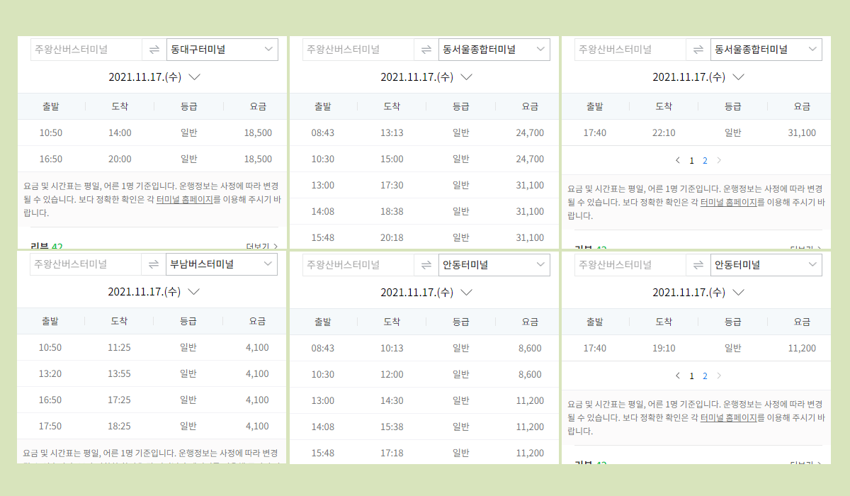 주왕산버스터미널 시간표 확인 및 예매는 버스타고 또는 티머니에서 할 수 있습니다. 가을 단풍구경 등산객이 몰리는 철에는 표가 없을 수도 있고, 코로나로 인한 노선 변경이나 배차간격 조정도 자주 있는 일인 만큼 반드시 미리 주왕산버스터미널 시간표를 확인 하고 예매를 해 두시기 바랍니다. 보다 효율적인 여행 계획을 세우고 싶으신 분들은 동서울터미널 시간표등을 미리 확인 하셔서 복귀하는 일정까지 확정 해 두시는 것을 추천 드립니다.